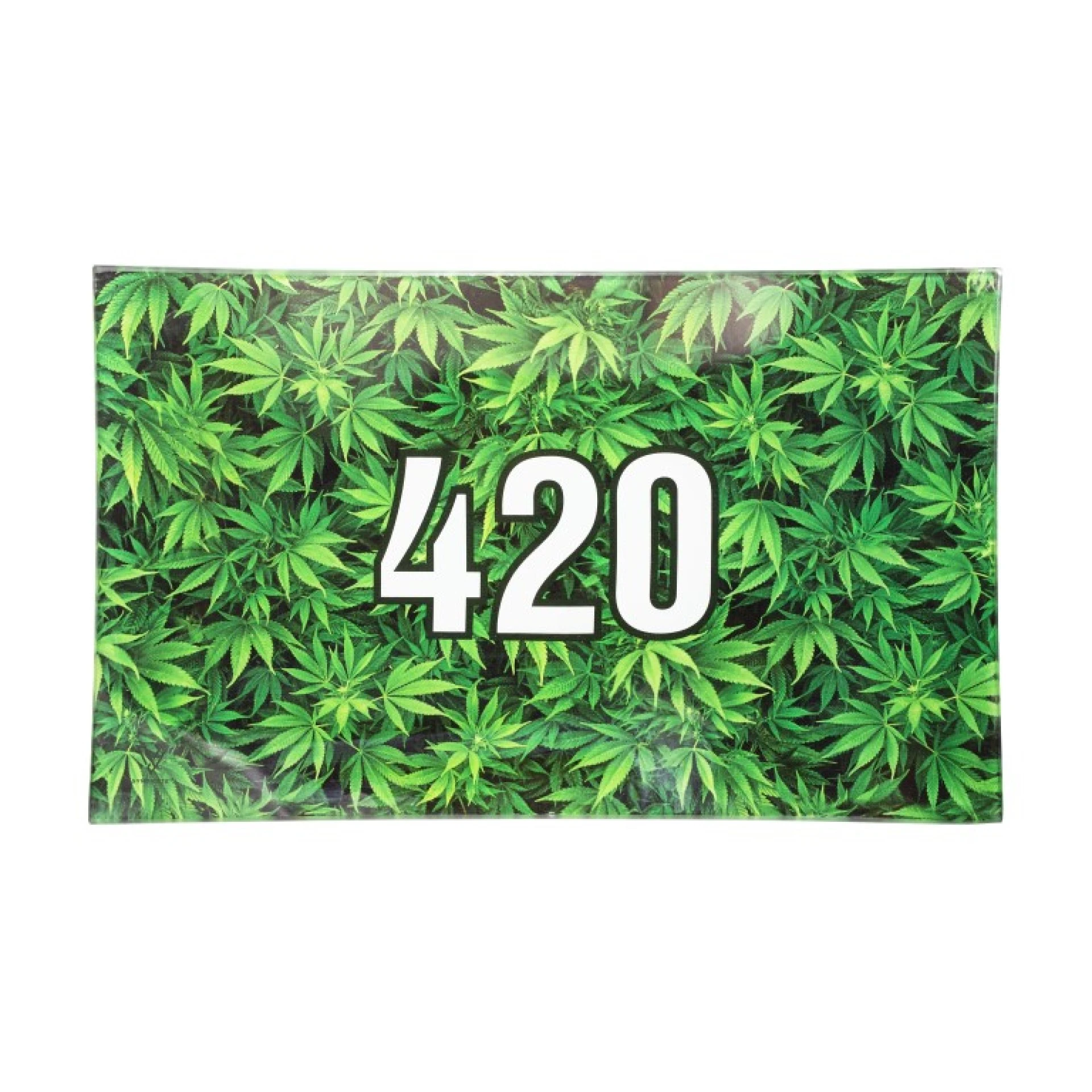 рулонный стеклянный поддон, тарелочка, лоток, поднос и т.д. от испанского производителя v syndicate. болшого размера (large) из очень качественного стекла премиум класса, и теперь не нужно сорить содежимым из пакетиков. очень удобный поднос с оригинальным рисунком с листиками каннабиса и надписью 4:20. для тех кто крутит сам и умеет это делать...